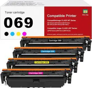 069 Toner Cartridge, Latest Upgraded Chip Replacement for Canon 069 069H CRG-069 for Canon Color imageCLASS MF753Cdw MF751Cdw LBP674Cdw Printer No Fading,No Streak,4 Pack