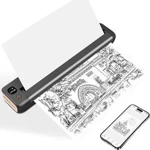 Buachois Portable Thermal Printer, Wireless Inkless Printer with APP Compatible with Phone, Support A4 for Home School Office Vehicles Travel Use