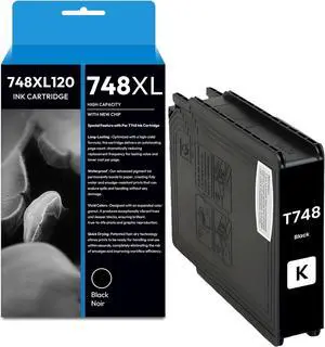 High Capacity 748 XL 748XL Ink Cartridge Black Remanufactured for T748XL120 Ink Cartridge for Workforce Pro WF-6090 WF-6530 WF-6590 WF-8090 WF-8590 Printers, 1-Pack T748XL Ink Kit with New Chip