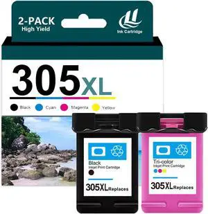 Compatible for HP 305XL Ink Cartridge Combo Pack Replacement for 305 XL Cartridges Fit for HP DeskJet 2710 2720 Plus 4120 4122 Envy 6010 6012 6020 Pro 6410 6412 Printers (1 Black, 1 Tricolor)
