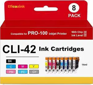 CLI-42 Pro 100 Ink Cartridges Compatible for Compatible for PRO-100 PRO-100S Printer (8 Pack)