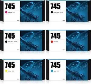 745 Ink Cartridge 6Pack Compatible with HP DesignJet Z2600 Z5600 Postscript Printer (300ML Matte Black/Photo Black/Cyan/Yellow/Magenta/Red)