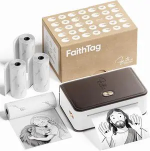 FaithTag Bible Sticker Mini Thermal Portable Inkless Printer FP31, Bible Study Journal Supplies, Bible Gifts for Women, Men, Kids, Christian, Compatible with 2" & 3" Thermal Paper, with 4 Rolls