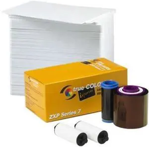Zebra 800077-711 Black Monochrome Ribbon for ZXP Series 7 Card Printer with 500 ID Zone Premium White Blank Plastic CR80 30 Mil PVC Cards