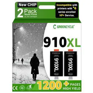 greencycle 910XL ink cartridges Compatible for HP 910XL Black Ink Cartriges 2 Pack Compatible with HP OfficeJet 8010 8015 8018 8022 OfficeJet Pro 8020 8030 8025 8028 8035