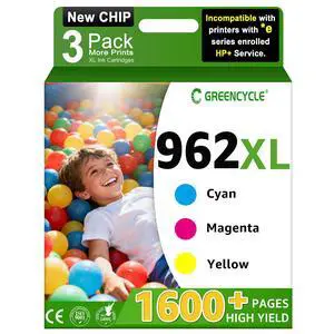 greencycle 962XL ink cartridges Compatible for HP 962XL Ink Cartriges Cyan/Magenta/Yellow 3 Pack Compatible with HP Office Jet Pro 9010 9012 9014 9015 9016 9018 9019 9020 9022 9025 9026 9027 9028 9029