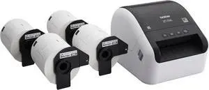 Brother QL-1100c Bundle, Wide Format Label Printer, Prints Postage Labels, Barcode & QR Code, USB Connectivity, Plus 4 Rolls of Genuine DK Label Tapes DK-1247 4.07 x 6.4 Die-Cut Shipping Labels