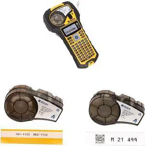 Brady M210 Portable Label Printer & Authentic (M21-750-427) Self-Laminating Wire Wrap & Authentic (M21-375-595-WT) All-Weather Vinyl Label