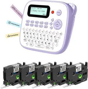Label Maker with 5PK White Tapes Waterproof, Purple Desktop Label Maker for Teachers Kids Classroom Gifts, Portable Labeler with Multiple Symbols &Fonts for Home Office School Use, D210S