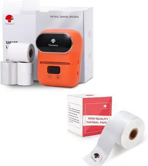 Phomemo M110S Label Maker Set- with 1 40x30mm Label, Mini Portable Bluetooth Thermal Label Printer for Clear Label, Barcode, Clothing, Office, Business, Compatible with Android & iOS, Orange