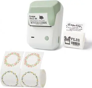 LMASBLTER Green B1 Label Maker, 2 Inch Barcode Printer, Portable Sticker Maker Machine for Barcode, Name, Address, Labeling, Mailing+2 Rolls Colorful Flower Frame Label Maker Tape