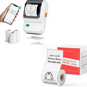 ORGSTA Label Maker Machine with Tape, T003 Thermal Label Maker, 0.8-3.15 Inch Bluetooth Label Printer with White Self-Adhesive 3 Roll 1.96'' x 1.18" Thermal Paper, Compatible with Phone & PC