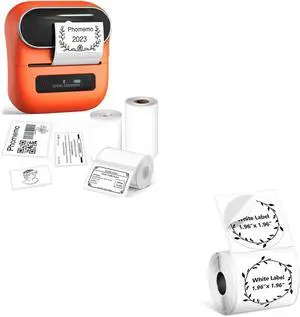 Phomemo D520BT Thermal Label Printer for Business, with 2" White Circel Thermal Label, 750 Labels/Roll