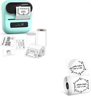 Phomemo M220 Label Maker & 1 Roll White Thermal Labels, 1.96" x 1.96"(50x50mm)