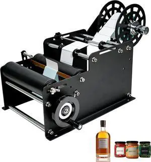 Manual Bottle Labeling Machine, Bottle Label Applicator Adjustable Manual Round Labeling Machine for Bottle Diameter 0.78-4.72 in