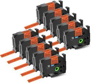 10 Pack Compatible for Ptouch TZe-B51 TZ-B51 TZe TZ Label Tape 24mm 0.94'' Laminated Black on Fluo Orange Label Maker Tape for PT-E500 PT-E500VP PT-E550W PT-E550WVP PT-H500LI