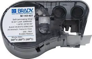 Brady - 143268 M-32-427 Vinyl B-427 Black on White/Clear Label Maker Cartridge, 1-1/2" Width x 1-1/2" Height, For BMP51/BMP53 Printers