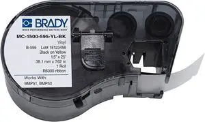 Brady - 143378 Official (MC-1500-595-YL-BK) High Adhesion Vinyl Label Tape, Black on Yellow - Designed for BMP51 and BMP53 Label Printers - 25' Length, 1.5" Width