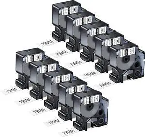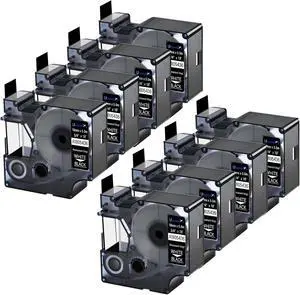 NineLeaf 10 Pack Compatible Industrial Label Tape Replacement for DYMO Rhino 18484 Black on White 19mm Permanent Polyester Label Tapes 3/4" x 18' for Rhino 5200 4200 5000 6000 Label Makers