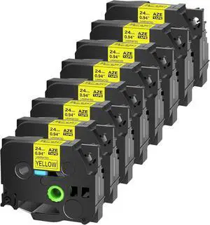 8 Pack Compatible for Ptouch TZe-C51 TZ-C51 TZe TZ Label Tape 24mm 0.94'' Laminated Black on Fluo Yellow Label Maker Tape for PT-9600 PT-9700PC PT-9800PCN PT-D600 PT-D600VP
