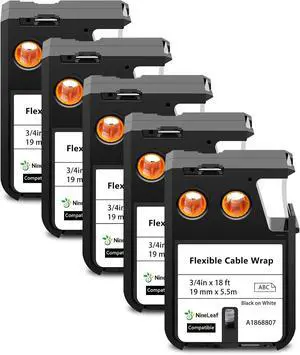 NineLeaf 5 Pack Compatible for Dymo Rhino XTL 1868807 19mm 3/4 inch Label Maker Tape Black on White Flexible Cable Wrap Labels for Rhino XTL-300 XTL-500 Label Printer