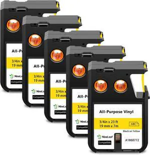 NineLeaf 5 Pack Compatible for Dymo Rhino XTL 1868772 19mm 3/4 inch Label Maker Tape Black on Yellow All-Purpose Vinyl Labels for Rhino XTL-300 XTL-500 Label Printer