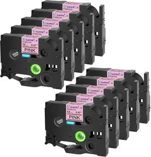 10 Pack TZe-RE31 12mm 0.47 Satin Ribbon Tape Compatible with Brother P Touch Label Tape 1/2 inch TZ-RE31 TZeRE31 Black on Pink Embellish Fabric Label for PT-H100 PT-H110 D200