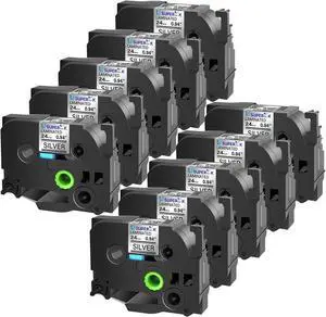10 Pack 24mm 0.94 Laminated Silver Tape Compatible for Brother P Touch Label Maker Tape TZe-951 24mm Black on Silver TZe951 TZ-951 1 Inch TZe TZ Label for PT-D600 D610BT P700 P750W P710BT