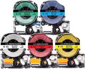 12mm Label Tapes Mixed Colors SS12KW SC12RW SC12BW SC12YW SC12GW Black On White Compatible with Label Maker LW-300 LW400 and Similar Models