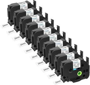 Cruxer 10 Pack Replacement for P-Touch TZe-S251 TZ-S251 24mm 0.94" Black on White Strong Adhesive Laminated Label Tape Compatible with Ptouch PT-D600 P700 P750W P710BT 9600 H500LI Label Maker