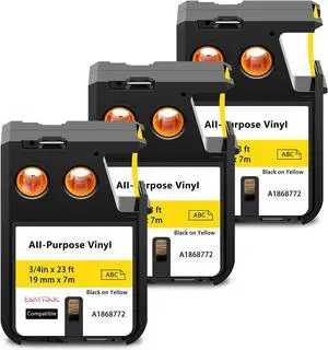 3 X Compatible with Dymo Rhino XTL All-Purpose Vinyl Label Tape 1868772 A1868772 Black on Yellow 19mm 3/4 inch x 23 Feet Replacement for Rhino XTL-300 XTL-500 Label Maker