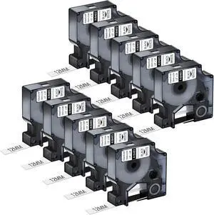 NineLeaf 10 Pack Compatible Industrial Label Tape Replacement for DYMO Rhino 18483 Black on White 12mm Permanent Polyester Label Tapes 1/2" x 18' for Rhino 5200 4200 1000 3000 5000 6000 Label Makers