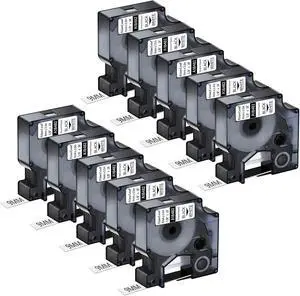 NineLeaf 10 PK Compatible for Dymo D1 53713 S0720930 Label Tape 24mm 1 Inch Black on White Refill Tape for LabelManager 400 450 450D 500TS LabelWriter 450 Duo 3M Label Maker