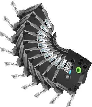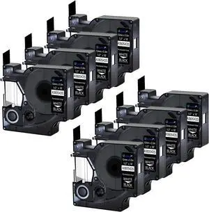 NineLeaf 8 Pack Compatible Industrial Label Tape Replacement for DYMO Rhino 18483 Black on White 12mm Permanent Polyester Label Tapes 1/2" x 18'