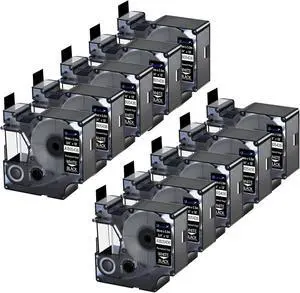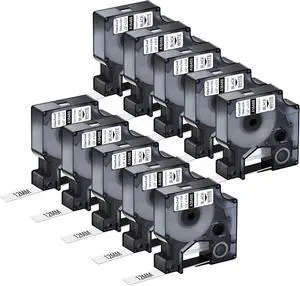 10 Pack Compatible for DYMO Refills 1805435 1/2'' 12mm White on Black Industrial Permanent Vinyl Label Tapes for Rhino 1000 3000 4200 5200 5000 6000 Industrial Label Makers