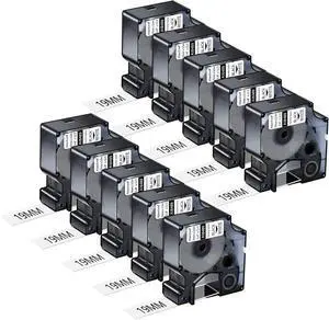 10 Pack Compatible for Dymo Rhino 1805436 White on Black 19mm 3/4'' x 5.5m 18' Permanent Vinyl Label Tape for Rhino Pro 4200 5000 5200 6000 3M PL200 PL300 Industrial Label Makers