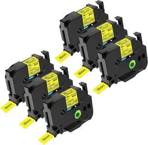 NineLeaf 6 Pack 36mm Label Tape Compatible for Brother P-touch TZe-661 1-1/2'' Black on Yellow TZe TZ Tape 36mm 1.4'' Laminated Yellow TZ-661 for Ptouch PT-P910BT P900W P950W PT-530 PT-550 Label Maker