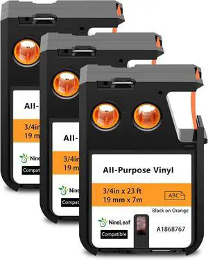 NineLeaf 3 Pack Compatible for Dymo Rhino XTL 1868767 19mm 3/4 inch Label Maker Tape Black on Orange All-Purpose Vinyl Labels for Rhino XTL-300 XTL-500 Label Printer