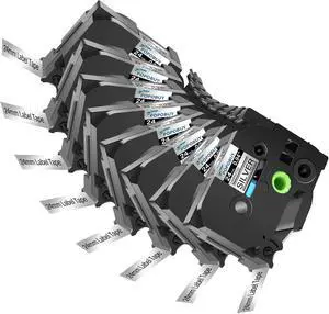 24mm 0.94 Laminated Sliver Tape Compatible for Brother P-Touch TZ951 TZ-951 TZe-951 TZe951 1 inch Black on Sliver Label Tape for PT-D600 D610BT P700 P750W P710BT Label Maker, 10 Pack