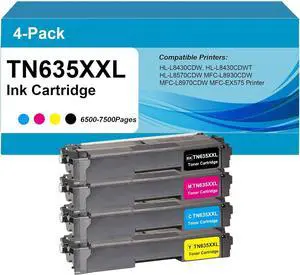 TN635XXL BCMY Super High Yield Toner Cartridge Compatible for HL-L8430CDW, HL-L8430CDWT, HL-L8570CDW, MFC-L8930CDW, MFC-L8970CDW, and MFC-EX575 Printer, 4 Pack
