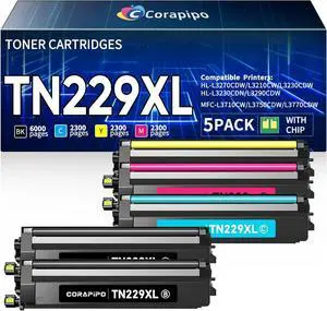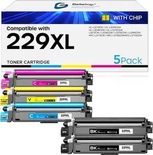TN229XL Toner Cartridge 5 Pack (with Chip) High Yield Replacement for Brother TN229XL TN229 to Work for MFC-L3720CDW MFC-L3780CDW HL-L3220CDW HL-3280CDW HL-L3300CDW Printers(2 Black/C/M/Y)