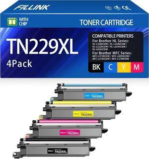 TN229XL Black,Cyan,Magenta,Yellow Toner Cartridges High Yield for Brother MFC-L3720CDW MFC-L3780CDW HL-L3280CDW HL-L3220CDW HL-L3300CDW Printer