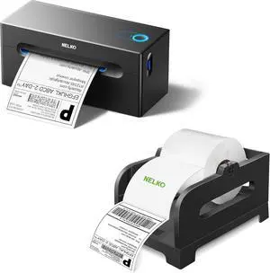 Nelko Thermal Shipping Label Printer (Black), 4x6 Shipping Label Printer for Small Business Label Holder (Black), Thermal Label Holder for Rolls and Fan-Fold Labels