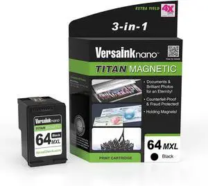 VersaInk-Nano HP 64 MXL Titan-Magnetic (MICR 3-in-1) Black Ink Cartridge Replacement of HP 64 and 64 XL, Works with HP Envy 6255,7155,7855,7255e,7955e,Tango
