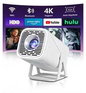 [Built-in Apps & 2026 Upgraded] Mini Projector with WiFi 6 and Bluetooth 5.4 Support 4K 1080P Auto Keystone 180° Rotatable Projector Portable Compatibile with HDMI/TV Stick/Memory Stick/Laptop