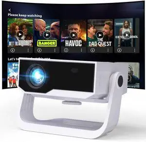 [Built-in Apps & Smart OS] Smart Projector with WiFi and Bluetooth, 1080P FHD 4K Support, Projector with Auto Keystone, Stereo Speaker, Compatible with HDMI/TV Stick/USB, Portable Projector, White