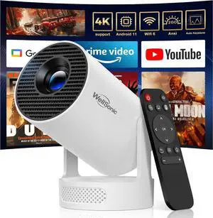 Mini Projector with WiFi and Bluetooth, Portable Projector 4K Support, Android 11, 5W Soundbase Speaker, 180° Rotation, Auto Keystone Correction, Smart Proyector for Movie Home Outdoor