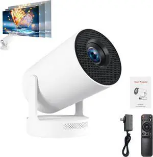 Mini 210° Smart Projector with Extra Large-Screen Display, Mini Smart Projector, Projector with Wifi and Bluetooth Compatible, Portable Out/Indoor Movie Projector (White)