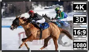 Portable Projector Screen Ambient Light Rejecting Fabric 60-133 Inch 16:9 4K HD Front Projection for Gaming Office Home Cinema(133 Inch)