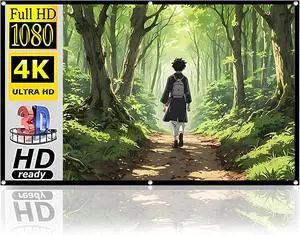 Portable Projection Screen with Stand 100inch White Fiberglass Home Theater Outdoor Bracket 4K HD for All Projectors